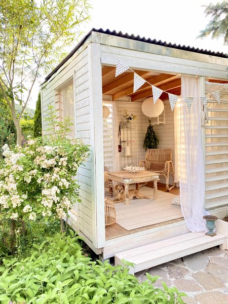 Die Holzterrasse von @beatrice71 gibt den Blick auf eine über 20 m lange Steinwand frei. So hat sie auch Wohnraum für viele Tiere ermöglicht. Hübsch eingerichtet und liebevoll dekoriert: das sommerliche Gartenhäuschen von @Merlynn .