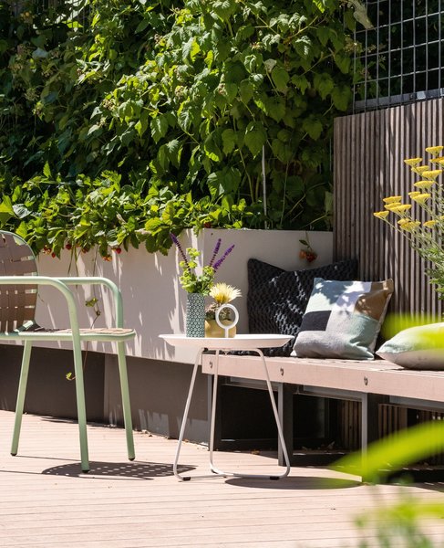 @yukiko hat uns ihre Lieblingsfarben für diesen Sommer verraten: Zitronengelb, sanftes Mintgrün, Weiß und die Farbe des Sichtschutzes, die zwischen Anthrazit und Graublau changiert. Unkraut, Beikraut, Heilkraut? @the.armbrust.home weiß es selbst nicht genau. Auf jeden Fall kommt es wunderbar vor der dunklen Wand zur Geltung.