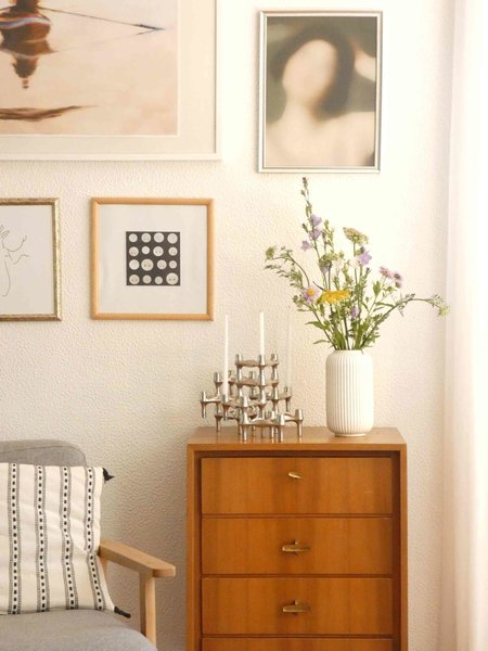 Ein bunter Wildblumenstrauß mit allem, was @Smeti am Wegesrand gefunden hat, schmückt den Esstisch – die ersten Cosmeen aus eigener Ernte inklusive. @amelies_sweet_home freut sich über den neuen Teppich von Søstrene Grene. Die fliederfarbene Tasche an der Tür sorgt für einen zusätzlichen Farbtupfer.