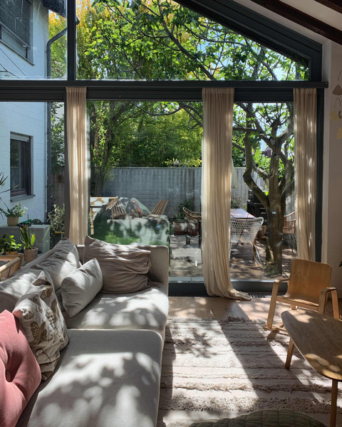 Leichte Vorhänge verleihen dem Zuhause von @Lebensraum und @TheisenAy Luftigkeit und helfen darüber hinaus, Räume zu gliedern. Bei Ayse sorgt ein Ventilator zudem für eine leichte Brise, die den Vorhang im kühlen Lüftchen tanzen lässt.
