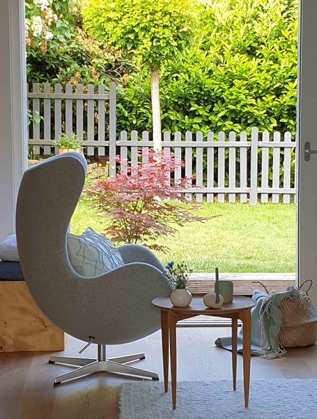 Der Sommer lässt sich auch einfach von innen durchs Fenster genießen – so wie es @Christel B zum Beispiel von ihrem drehbaren Egg Chair aus tut. Bei @Solevita650 sind die Bücher direkt vom Sofa aus griffbereit, um sich in fiktive Welten entführen zu lassen.
